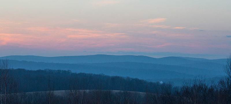 Situated in the foothills of the Berkshires, Litchfield County is Connecticut’s version of big sky country. The vistas are a kaleidoscope of color and light. As clouds roll through, the sky provides an ever-changing backdrop. Rising mist over a pasture; a foggy morning on the hilltop at the airport; snow-covered pines on a hillside; a snow fence along the hayfield; pale light over distant hills after sundown; an autumn tapestry of red and orange treetops. These images represent the long view that the hills provide. Sometimes you just have to look off into the distance.